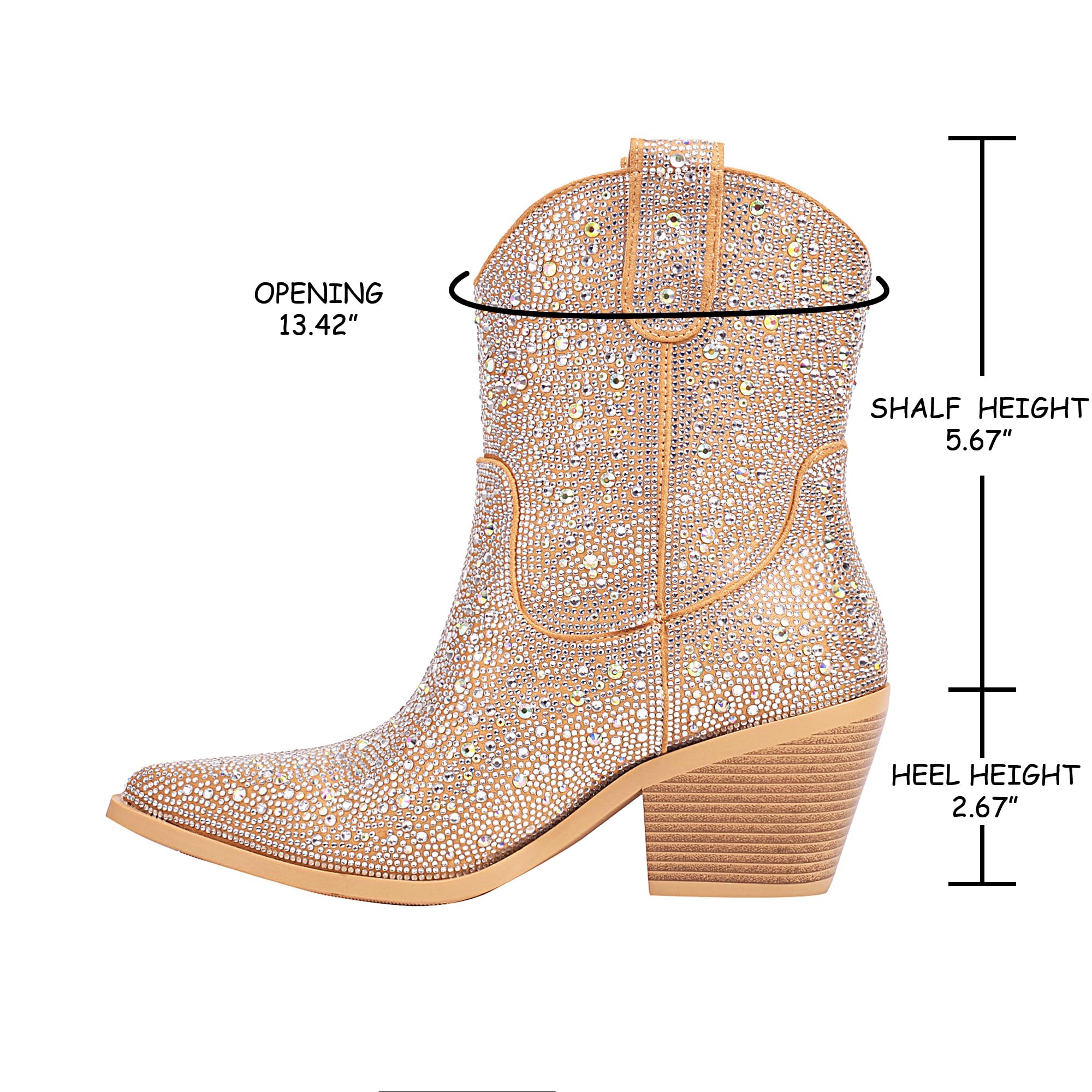 💕【High Quality Material】: Rhinestone boots with classic block heels and sexy pointed toes keep fashion elements,enhances aesthetic and femininity,elongating your legs. Rubber outsole provides traction and durability,whether you're outdoors,working or traveling, ensuring maximum comfort when worn for long periods of time.